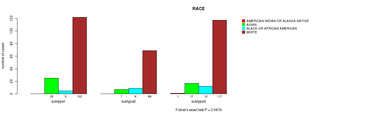 Table S179. Clustering Approach #10: 'MIRseq Mature cHierClus subtypes' versus Clinical Feature #16: 'RACE'