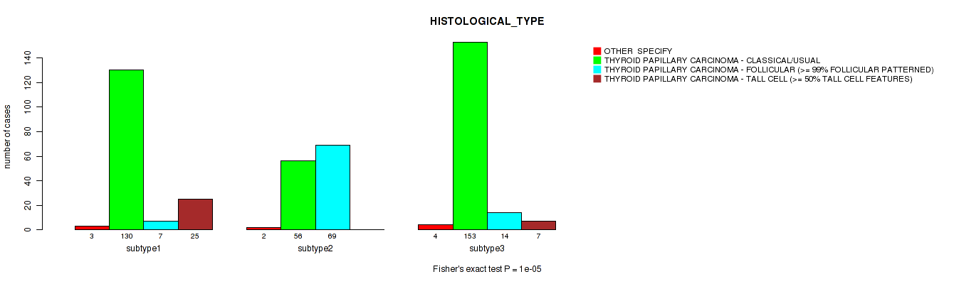 | HISTOLOGICAL TYPE | Fisher's exact test |