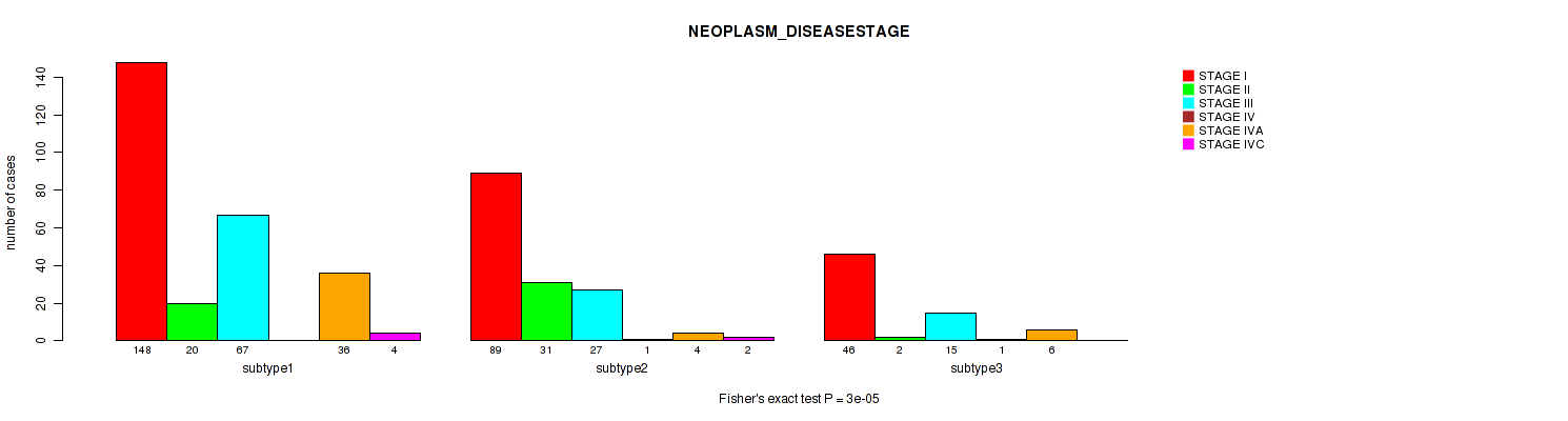| NEOPLASM DISEASESTAGE | Fisher's exact test |
