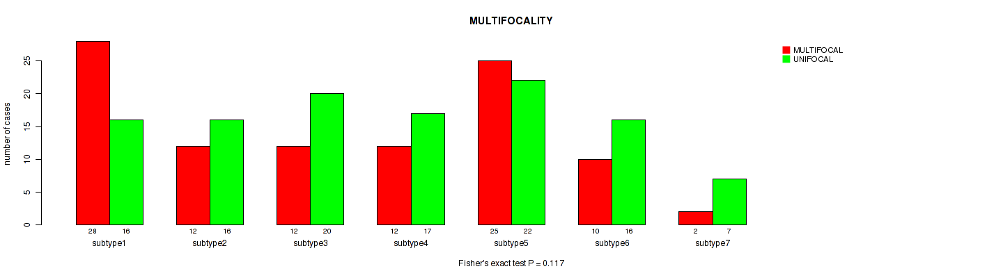 Figure S167. Get High-res Image Clustering Approach #10: 'MIRseq Mature cHierClus subtypes' versus Clinical Feature #14: 'MULTIFOCALITY'
