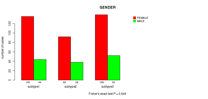 Figure S160. Get High-res Image Clustering Approach #10: 'MIRseq Mature cHierClus subtypes' versus Clinical Feature #7: 'GENDER'