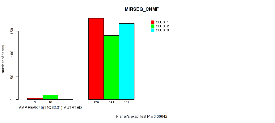 amp_14q32.31 cnv correlated to 'CN_CNMF', 'METHLYATION_CNMF', 'MRNASEQ_CNMF', 'MRNASEQ_CHIERARCHICAL', 'MIRSEQ_CNMF', 'MIRSEQ_CHIERARCHICAL', and 'MIRSEQ_MATURE_CHIERARCHICAL'.