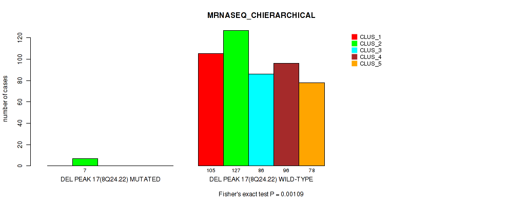 del_8q24.22 cnv correlated to 'CN_CNMF', 'METHLYATION_CNMF', 'MRNASEQ_CNMF', 'MRNASEQ_CHIERARCHICAL', 'MIRSEQ_CNMF', 'MIRSEQ_CHIERARCHICAL', 'MIRSEQ_MATURE_CNMF', and 'MIRSEQ_MATURE_CHIERARCHICAL'.