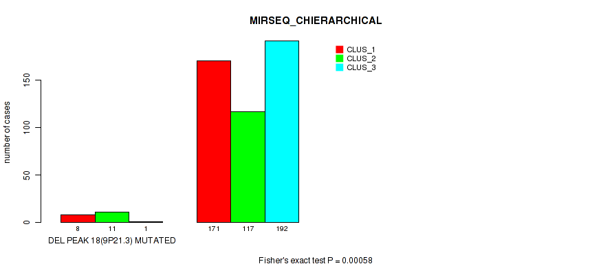 Figure S418. Get High-res Image Gene #96: 'del_22q13.32' versus Molecular Subtype #8: 'MIRSEQ_CHIERARCHICAL'