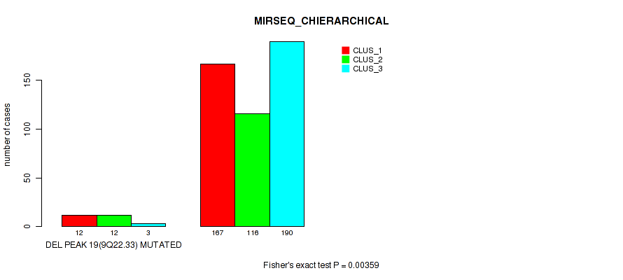 del_9q22.33 cnv correlated to 'CN_CNMF', 'MRNASEQ_CHIERARCHICAL', 'MIRSEQ_CNMF', 'MIRSEQ_CHIERARCHICAL', and 'MIRSEQ_MATURE_CHIERARCHICAL'.