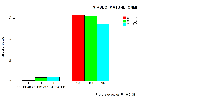del_13q22.1 cnv correlated to 'CN_CNMF', 'METHLYATION_CNMF', 'MRNASEQ_CNMF', 'MRNASEQ_CHIERARCHICAL', 'MIRSEQ_CNMF', 'MIRSEQ_CHIERARCHICAL', 'MIRSEQ_MATURE_CNMF', and 'MIRSEQ_MATURE_CHIERARCHICAL'.