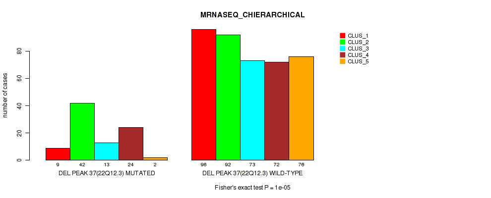 Figure S407. Get High-res Image Gene #95: 'del_22q13.2' versus Molecular Subtype #5: 'MRNASEQ_CNMF'