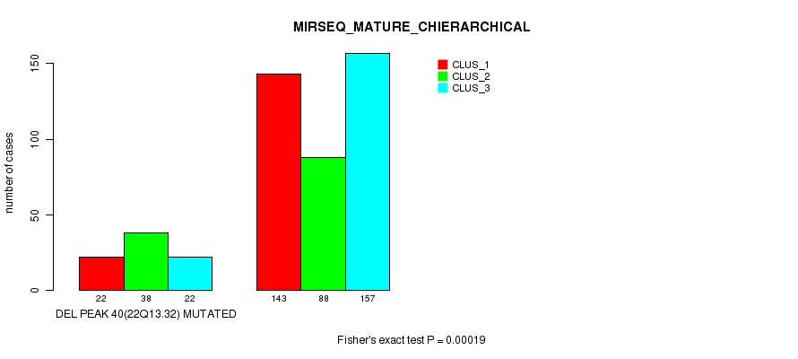 Figure S420. Get High-res Image Gene #96: 'del_22q13.32' versus Molecular Subtype #10: 'MIRSEQ_MATURE_CHIERARCHICAL'