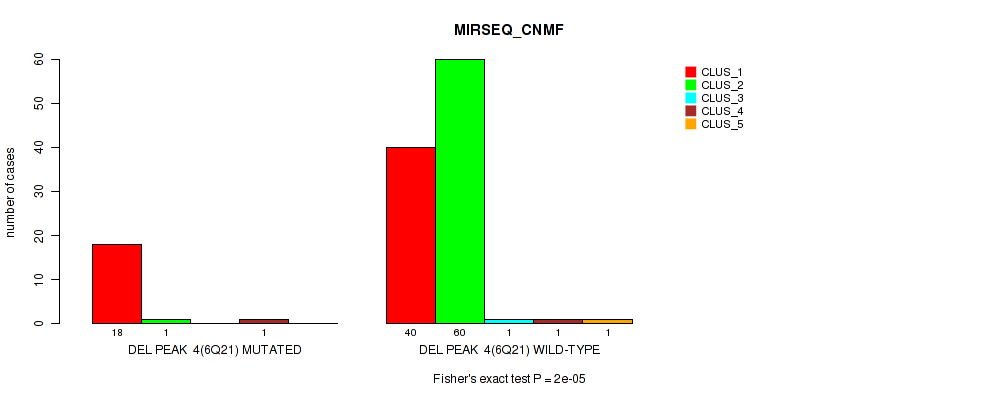 del_6q21 cnv correlated to 'CN_CNMF', 'METHLYATION_CNMF', 'RPPA_CNMF', 'RPPA_CHIERARCHICAL', 'MRNASEQ_CNMF', 'MRNASEQ_CHIERARCHICAL', 'MIRSEQ_CNMF', 'MIRSEQ_CHIERARCHICAL', 'MIRSEQ_MATURE_CNMF', and 'MIRSEQ_MATURE_CHIERARCHICAL'.