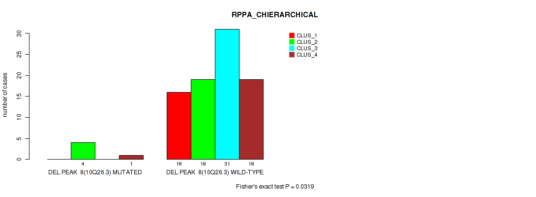 del_10q26.3 cnv correlated to 'METHLYATION_CNMF', 'RPPA_CHIERARCHICAL', and 'MIRSEQ_MATURE_CHIERARCHICAL'.