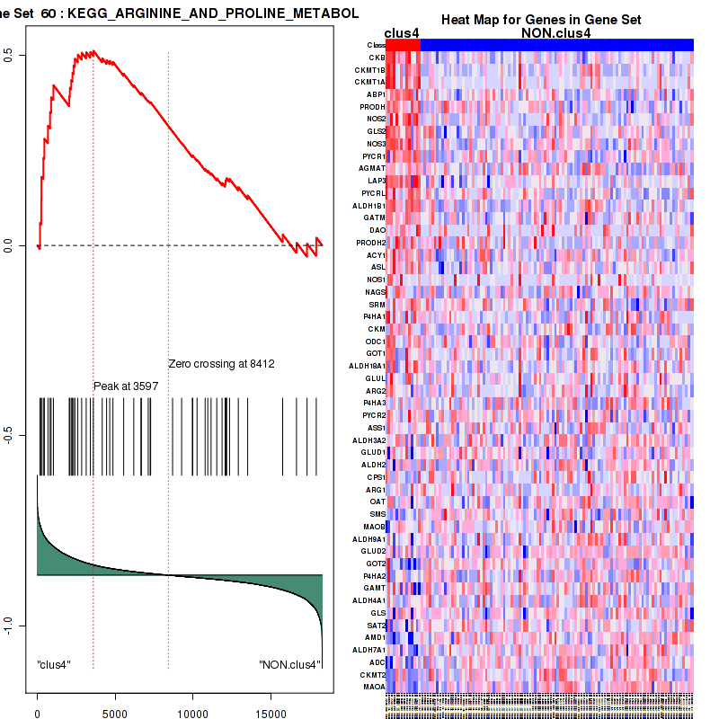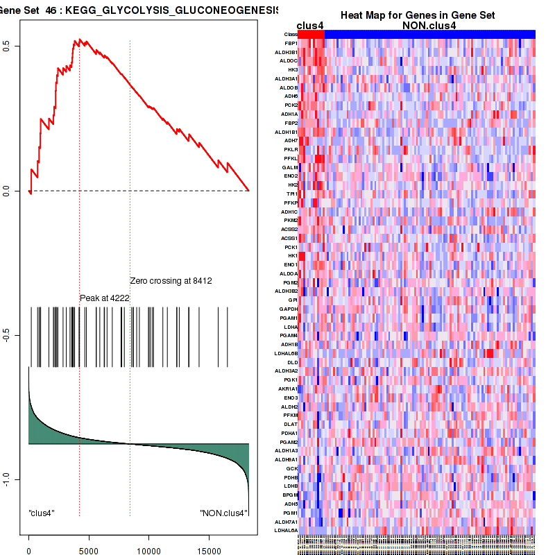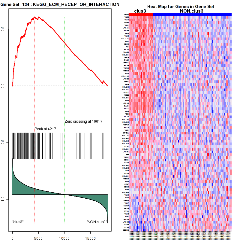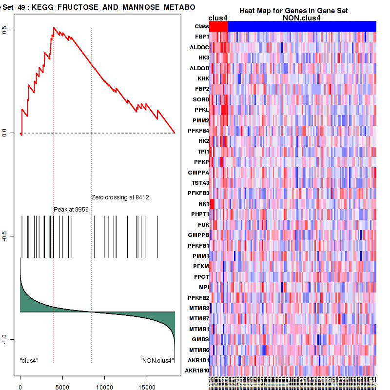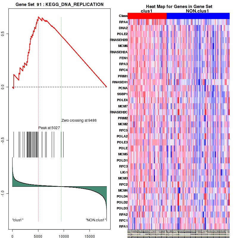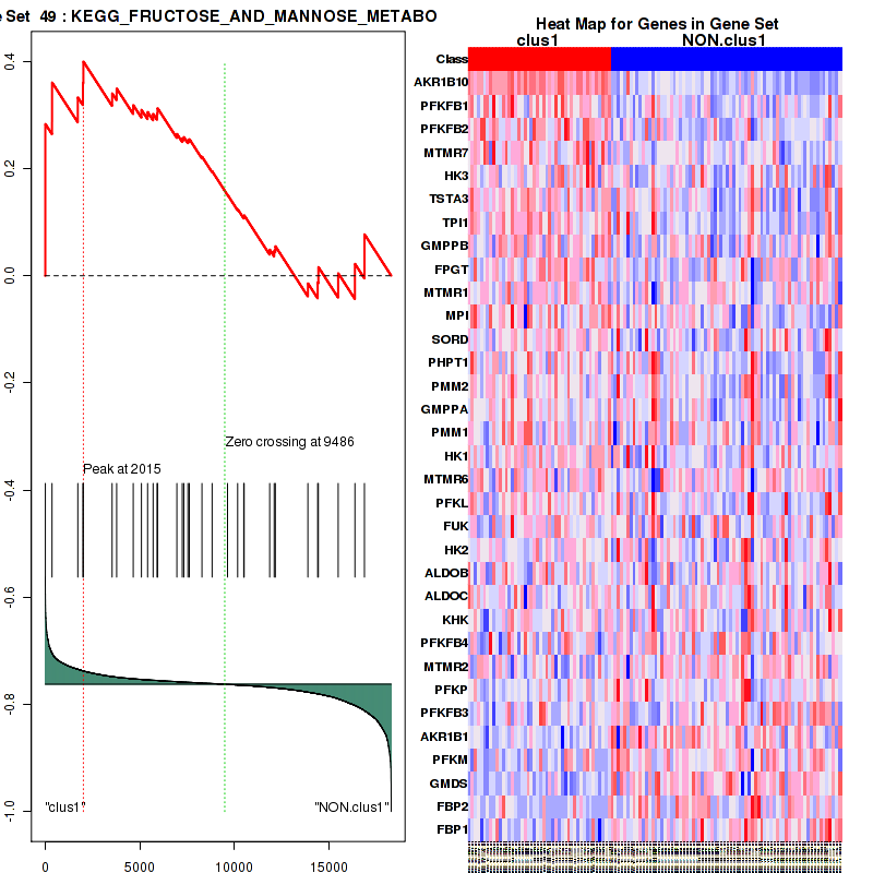 Table S1.  Get Full Table This table shows a Running Enrichment Score (RES) of each gene in this pathway, that is, the enrichment score at this point in the ranked list of genes. All genes are ranked by Signal-to-Noise (S2N), a measure of similarity as default and are used to obtain ES matrix of all genes. In this way, GSEA tool uses expression pattern of not only overlapped genes but also not-overlapped genes to produce ES matrix.