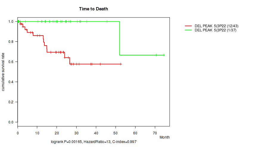 del_3p22.2 cnv correlated to 'Time to Death'.