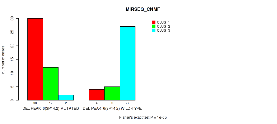 del_3p14.2 cnv correlated to 'CN_CNMF', 'METHLYATION_CNMF', 'MRNASEQ_CNMF', 'MRNASEQ_CHIERARCHICAL', 'MIRSEQ_CNMF', 'MIRSEQ_CHIERARCHICAL', 'MIRSEQ_MATURE_CNMF', and 'MIRSEQ_MATURE_CHIERARCHICAL'.
