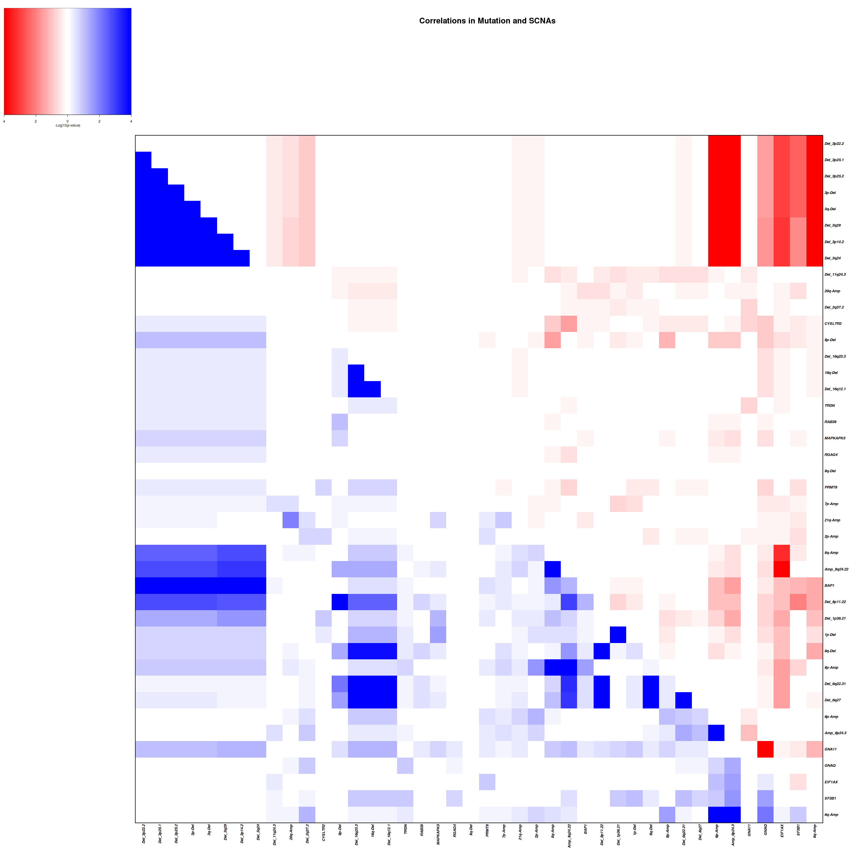 Figure 4. Get High-res Image Co-occurring and mutually-exclusive pairs for all copy number and mutation events. Blue means two events are co-occurring and red means two events are mutually-exclusive.