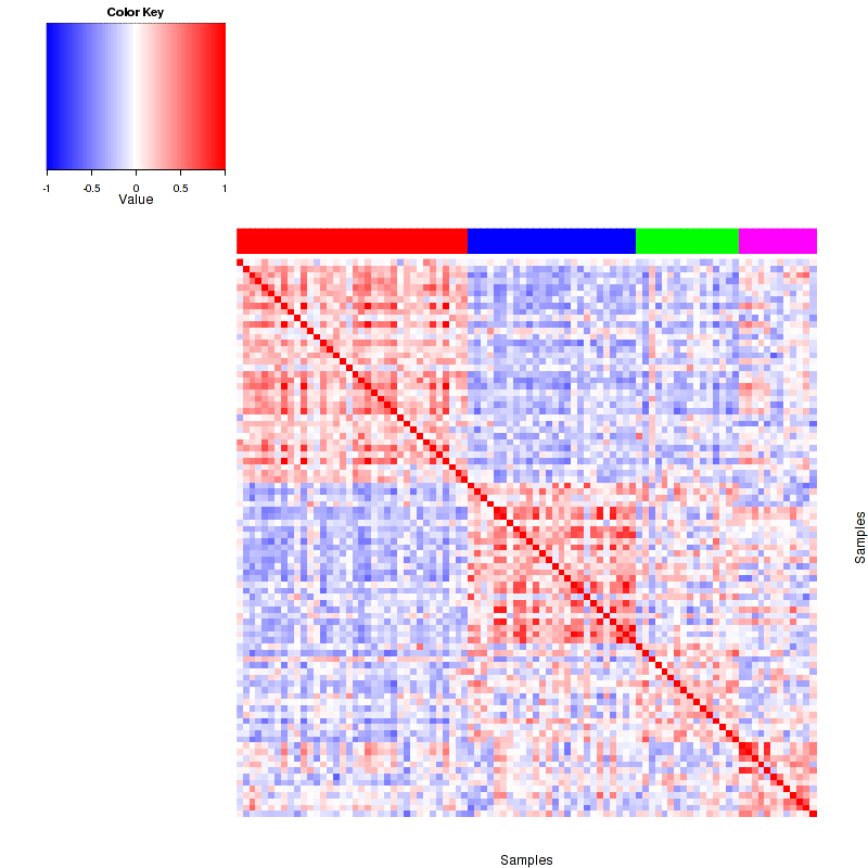 Figure 3.  Get High-res Image The consensus matrix after clustering shows 4 clusters with limited overlap between clusters.