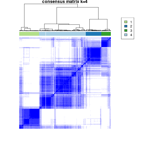 Figure 4. Get High-res Image The consensus matrix after clustering shows 4 clusters with limited overlap between clusters.