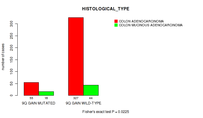 9q loss cnv correlated to 'HISTOLOGICAL_TYPE'.