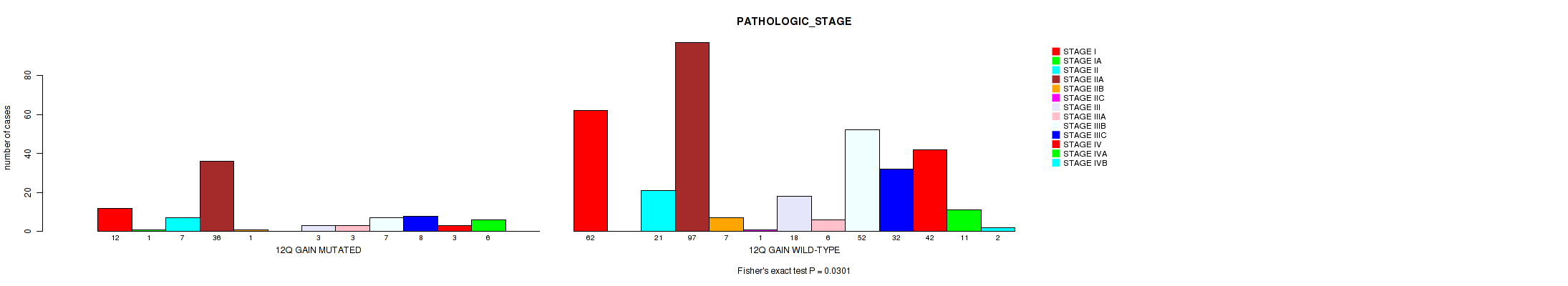 12q gain cnv correlated to 'PATHOLOGIC_STAGE' and 'NUMBER_OF_LYMPH_NODES'.