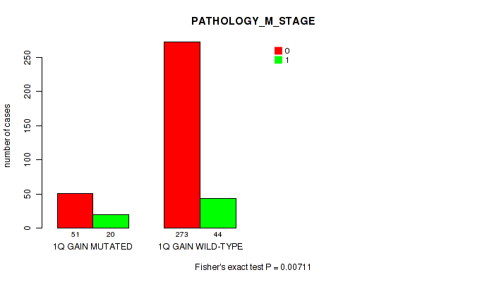 1q gain cnv correlated to 'PATHOLOGY_M_STAGE' and 'NUMBER_OF_LYMPH_NODES'.