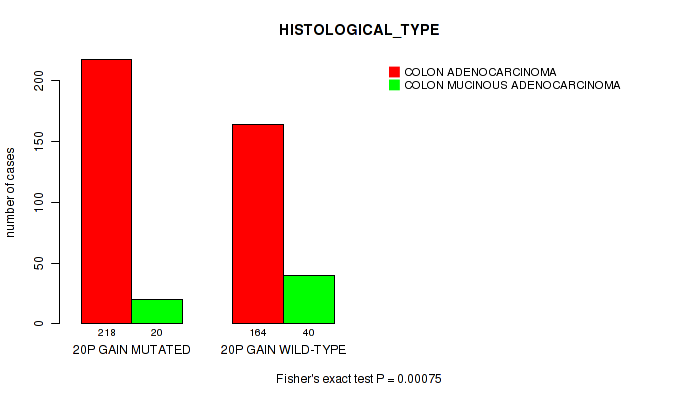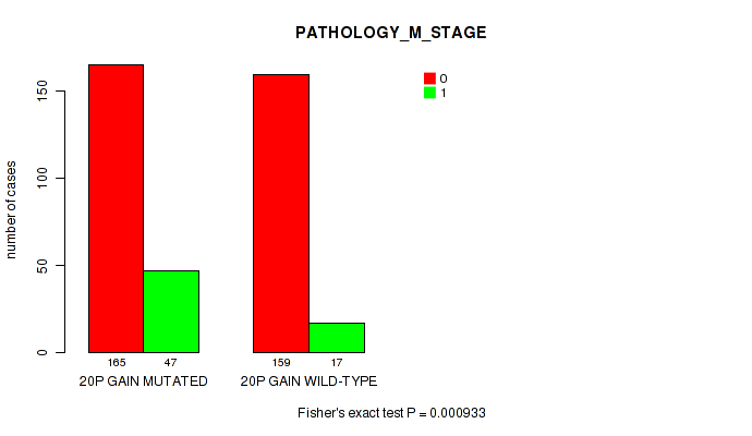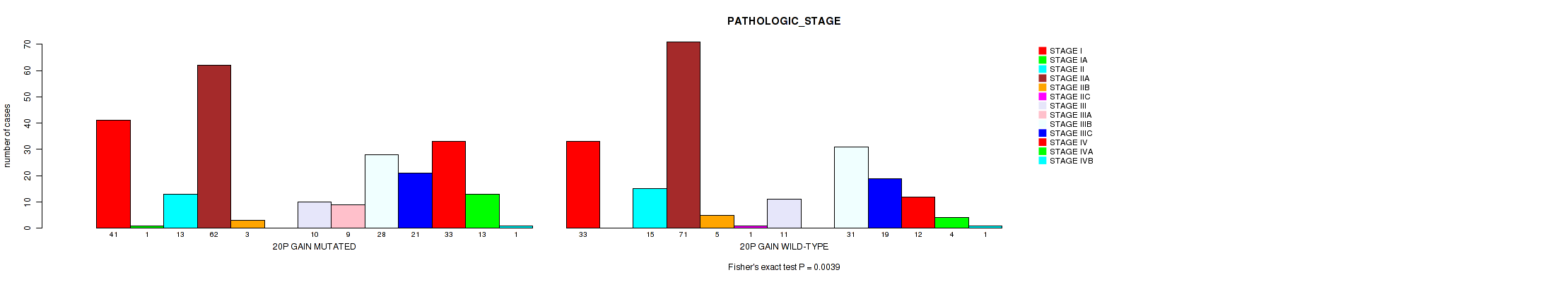 20p gain cnv correlated to 'PATHOLOGIC_STAGE', 'PATHOLOGY_M_STAGE', and 'HISTOLOGICAL_TYPE'.