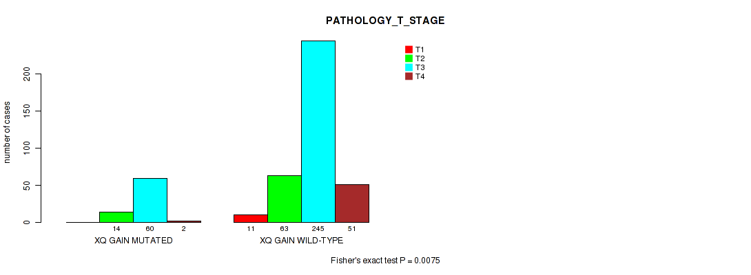 xq gain cnv correlated to 'PATHOLOGY_T_STAGE'.