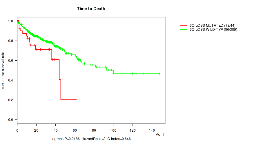 6p loss cnv correlated to 'Time to Death' and 'RACE'.