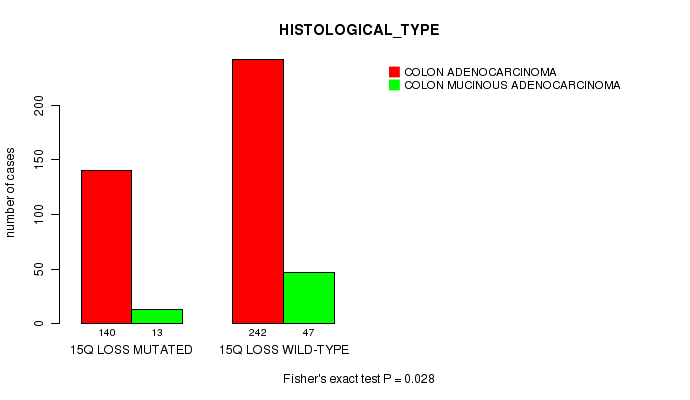 15q loss cnv correlated to 'PATHOLOGY_M_STAGE', 'HISTOLOGICAL_TYPE', and 'NUMBER_OF_LYMPH_NODES'.