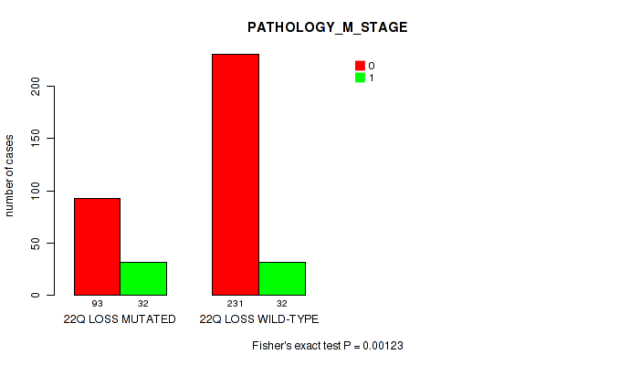 Figure S174. Get High-res Image Gene #79: '22q loss' versus Clinical Feature #6: 'PATHOLOGY_M_STAGE'