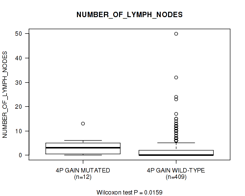 4p gain cnv correlated to 'PATHOLOGY_N_STAGE', 'NUMBER_OF_LYMPH_NODES', and 'RACE'.