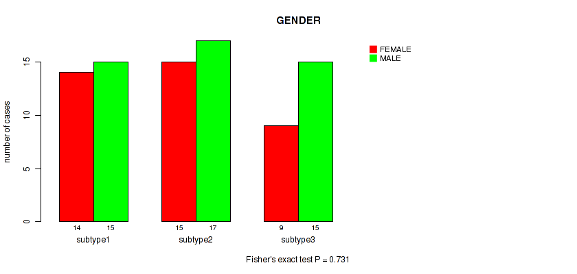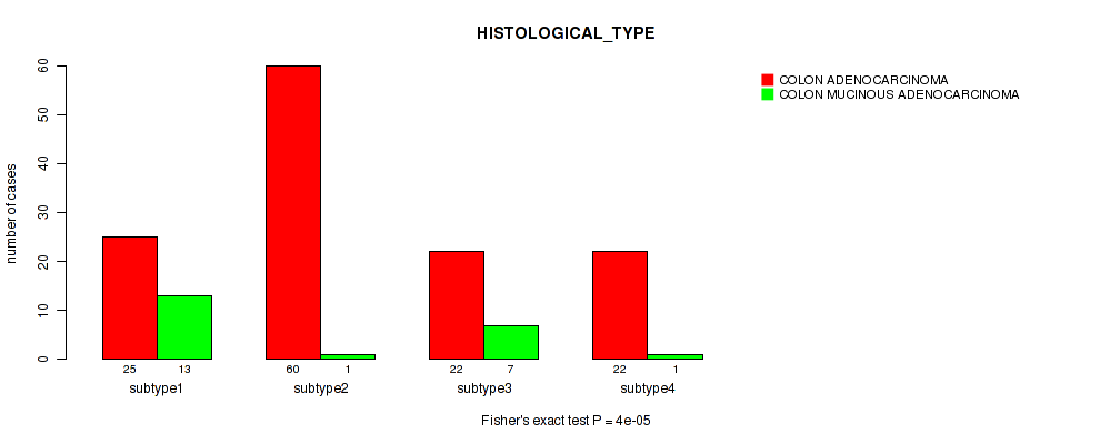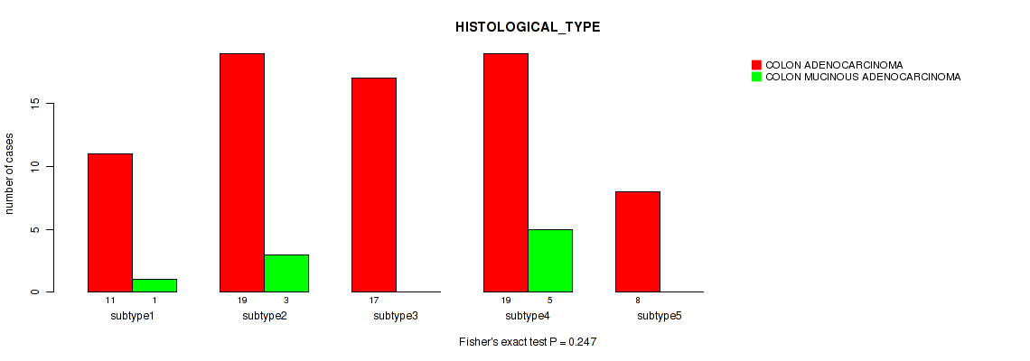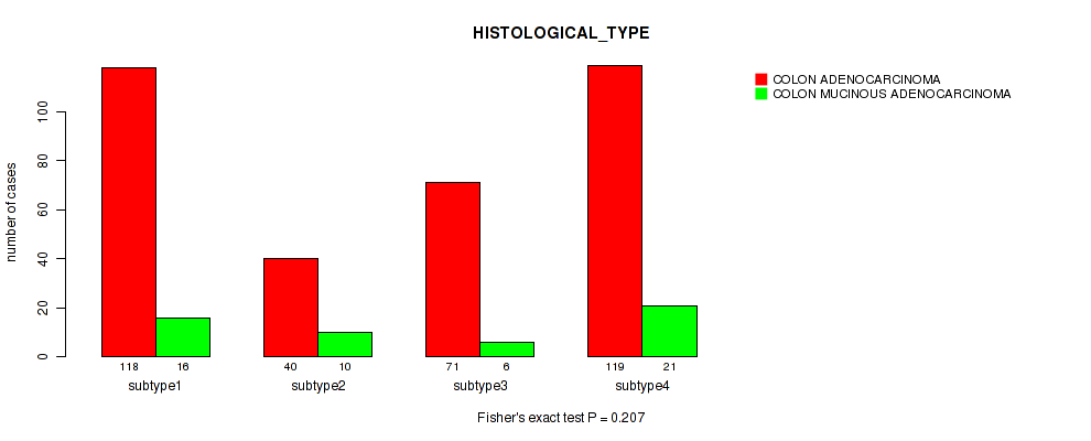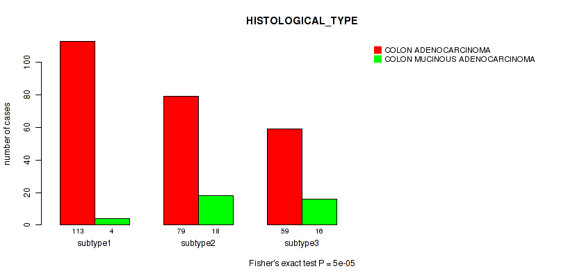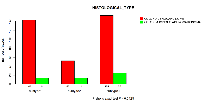 Consensus hierarchical clustering analysis on array-based mRNA expression data identified 3 subtypes that correlate to 'HISTOLOGICAL_TYPE'.