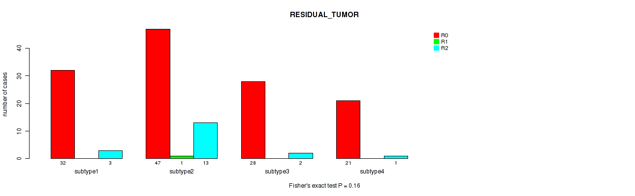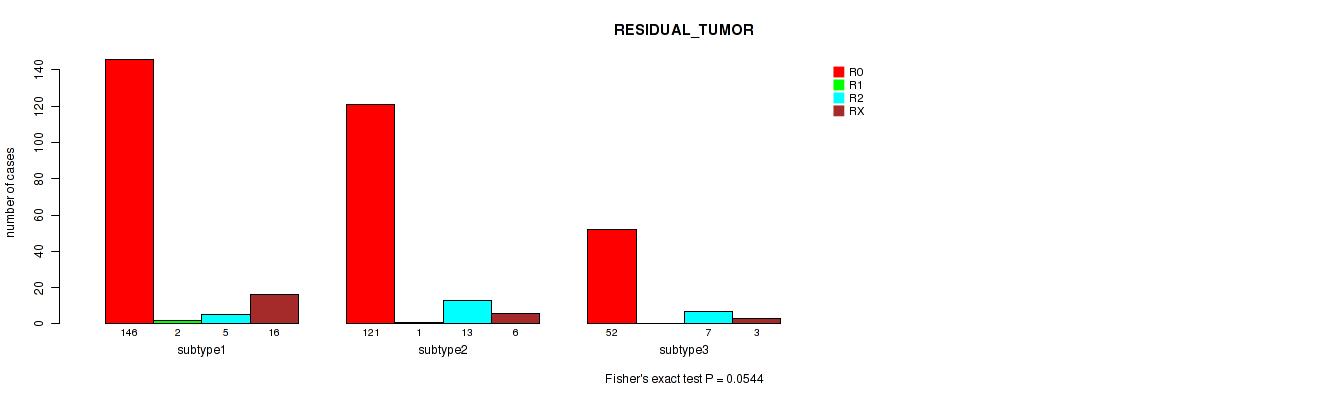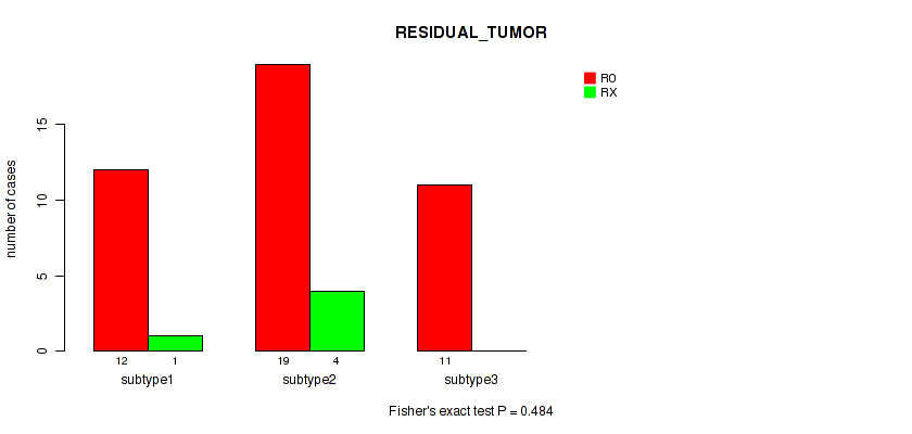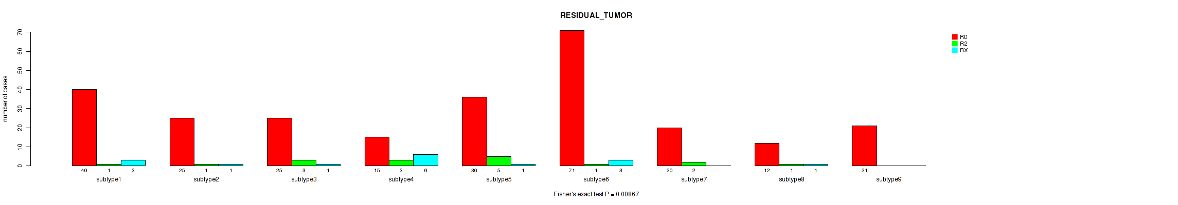 Consensus hierarchical clustering analysis on RPPA data identified 9 subtypes that correlate to 'RESIDUAL_TUMOR'.