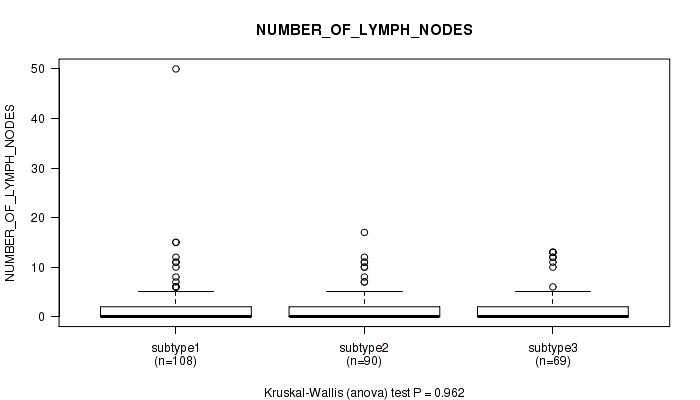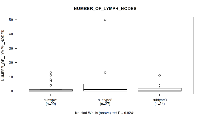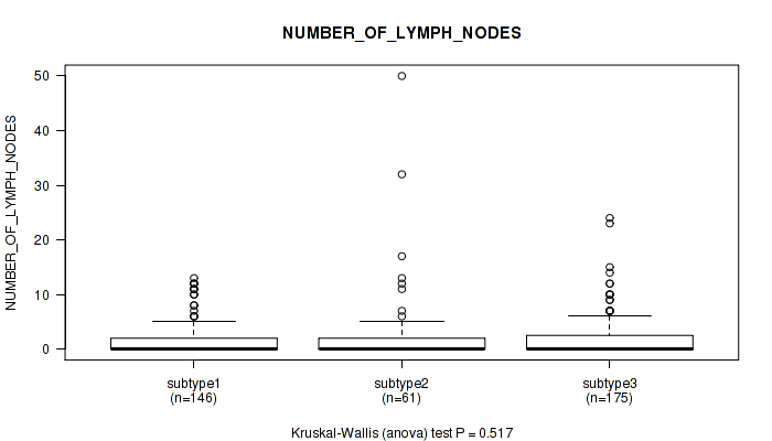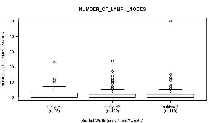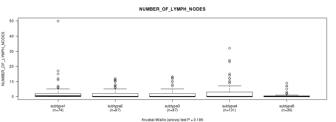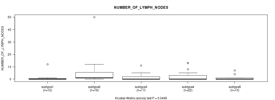 Figure S149. Get High-res Image Clustering Approach #12: 'MIRseq Mature cHierClus subtypes' versus Clinical Feature #11: 'NUMBER_OF_LYMPH_NODES'
