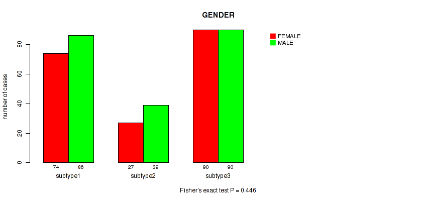 Figure S146. Get High-res Image Clustering Approach #12: 'MIRseq Mature cHierClus subtypes' versus Clinical Feature #7: 'GENDER'
