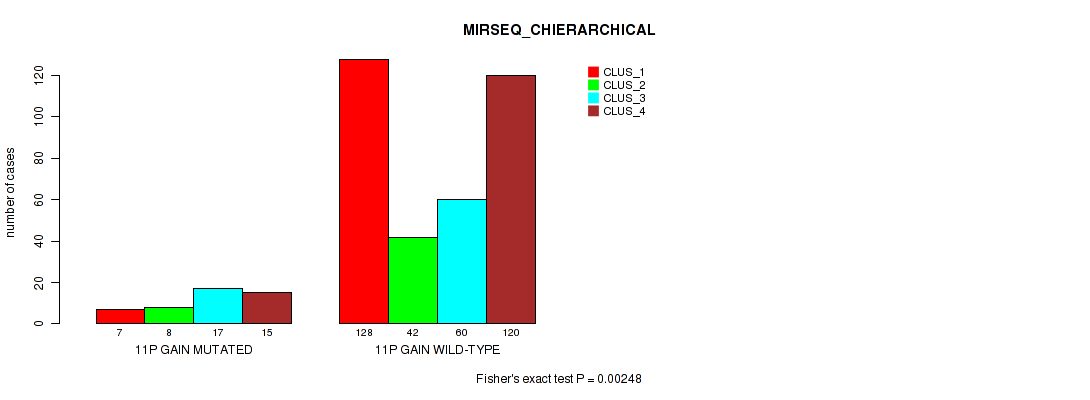 11p gain cnv correlated to 'MRNA_CNMF', 'MRNA_CHIERARCHICAL', 'CN_CNMF', 'METHLYATION_CNMF', 'MRNASEQ_CNMF', 'MRNASEQ_CHIERARCHICAL', and 'MIRSEQ_CHIERARCHICAL'.