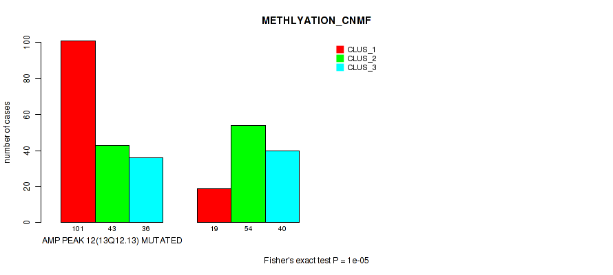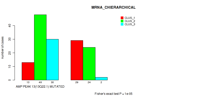 amp_13q12.13 cnv correlated to 'MRNA_CNMF', 'MRNA_CHIERARCHICAL', 'CN_CNMF', 'METHLYATION_CNMF', 'MRNASEQ_CNMF', 'MRNASEQ_CHIERARCHICAL', and 'MIRSEQ_MATURE_CHIERARCHICAL'.