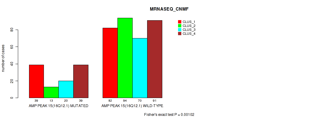 amp_16q12.1 cnv correlated to 'MRNA_CNMF', 'MRNA_CHIERARCHICAL', 'CN_CNMF', 'METHLYATION_CNMF', 'MRNASEQ_CNMF', 'MRNASEQ_CHIERARCHICAL', and 'MIRSEQ_MATURE_CHIERARCHICAL'.