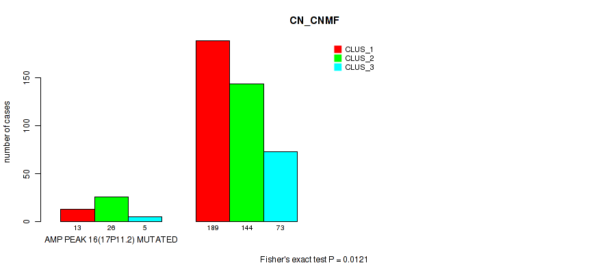 amp_17p11.2 cnv correlated to 'MRNA_CHIERARCHICAL', 'CN_CNMF', and 'METHLYATION_CNMF'.