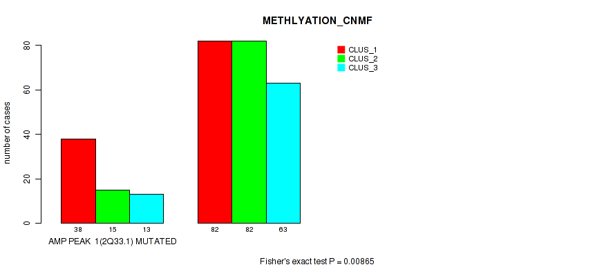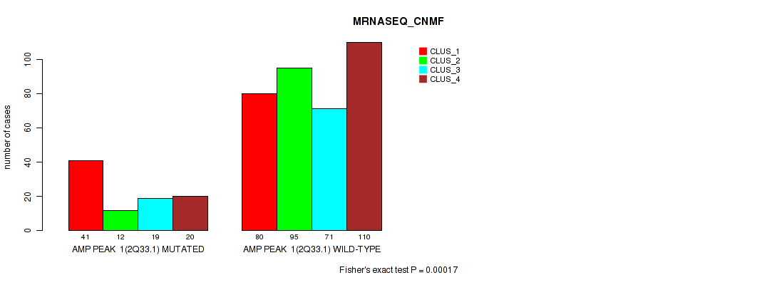 amp_2q33.1 cnv correlated to 'CN_CNMF', 'METHLYATION_CNMF', 'MRNASEQ_CNMF', and 'MRNASEQ_CHIERARCHICAL'.