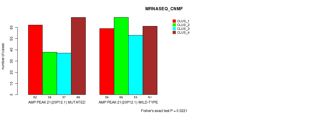 Table S355. Gene #68: 'del_21q11.2' versus Molecular Subtype #1: 'MRNA_CNMF'