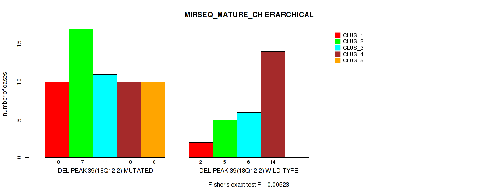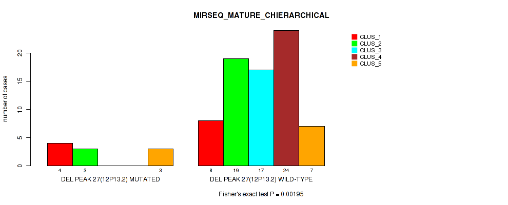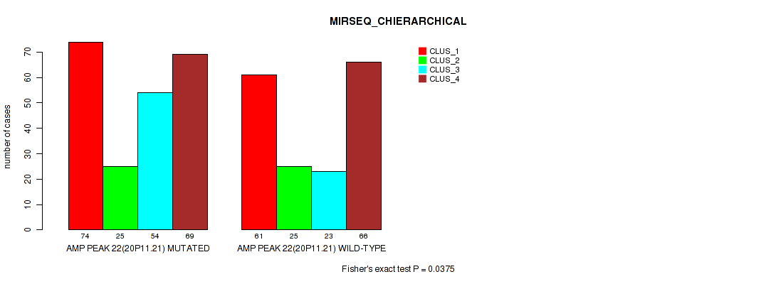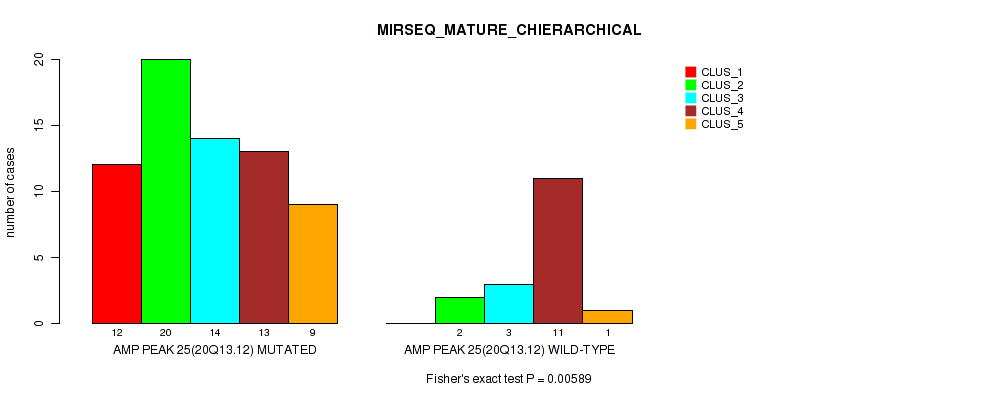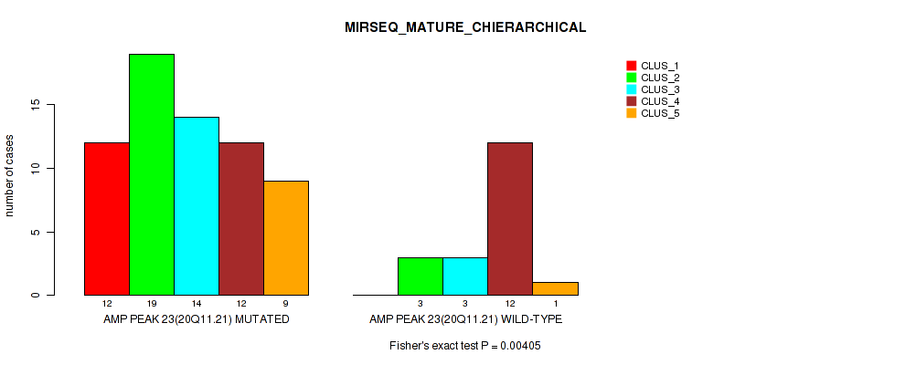 Table S354. Gene #67: 'del_20p12.1' versus Molecular Subtype #12: 'MIRSEQ_MATURE_CHIERARCHICAL'