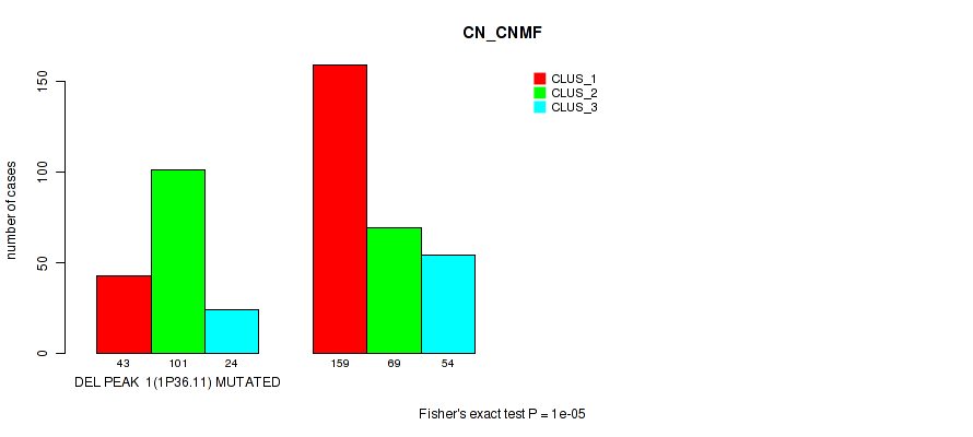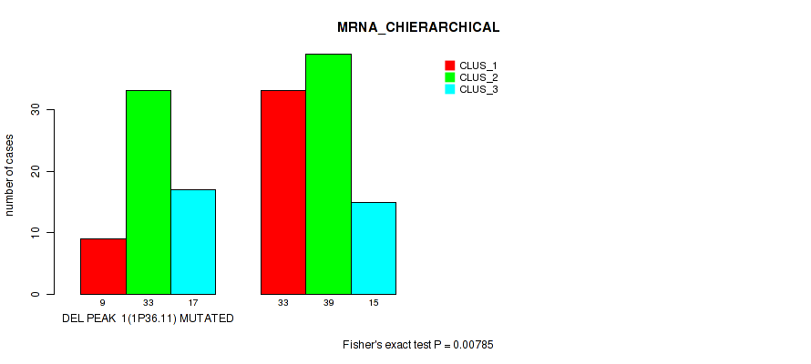 del_1p36.11 cnv correlated to 'MRNA_CNMF', 'MRNA_CHIERARCHICAL', 'CN_CNMF', 'METHLYATION_CNMF', 'RPPA_CHIERARCHICAL', 'MRNASEQ_CNMF', 'MRNASEQ_CHIERARCHICAL', and 'MIRSEQ_CHIERARCHICAL'.