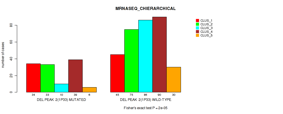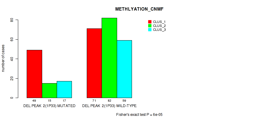 del_1p33 cnv correlated to 'MRNA_CNMF', 'CN_CNMF', 'METHLYATION_CNMF', 'MRNASEQ_CNMF', and 'MRNASEQ_CHIERARCHICAL'.