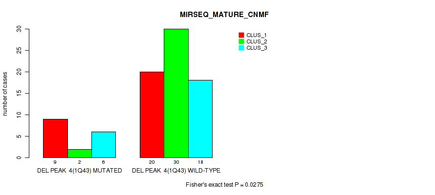 del_1q43 cnv correlated to 'CN_CNMF', 'METHLYATION_CNMF', 'MRNASEQ_CNMF', 'MRNASEQ_CHIERARCHICAL', 'MIRSEQ_CHIERARCHICAL', and 'MIRSEQ_MATURE_CNMF'.