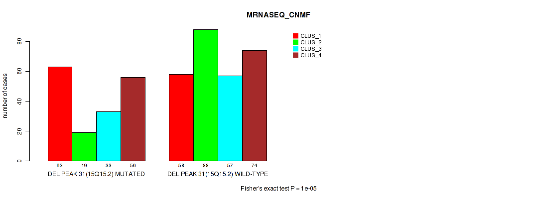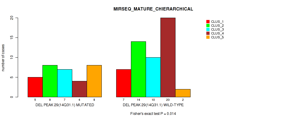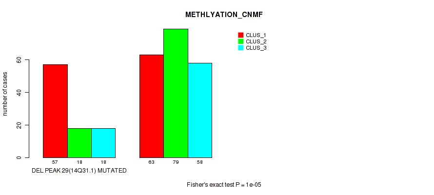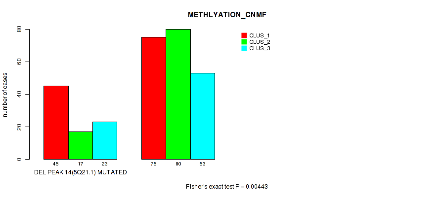 del_14q31.1 cnv correlated to 'MRNA_CNMF', 'MRNA_CHIERARCHICAL', 'CN_CNMF', 'METHLYATION_CNMF', 'RPPA_CNMF', 'MRNASEQ_CNMF', 'MRNASEQ_CHIERARCHICAL', 'MIRSEQ_CHIERARCHICAL', and 'MIRSEQ_MATURE_CHIERARCHICAL'.