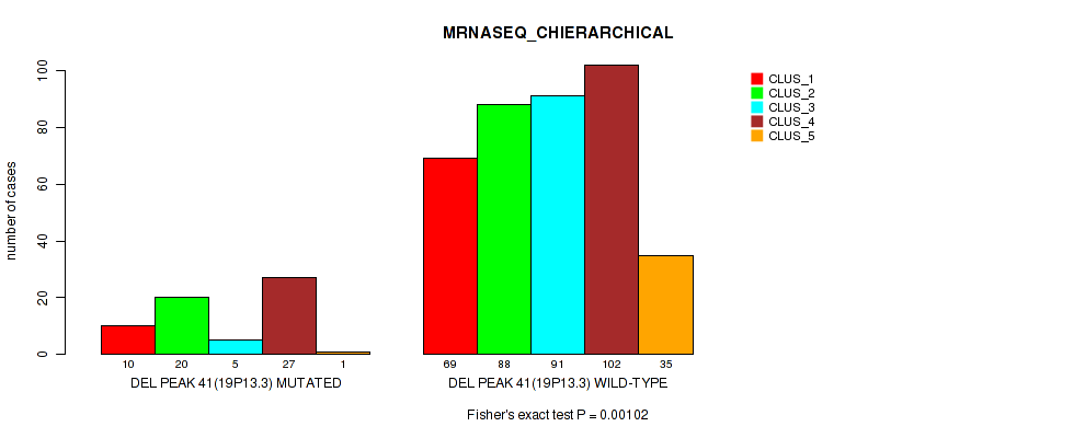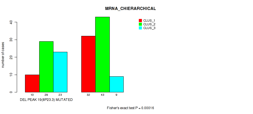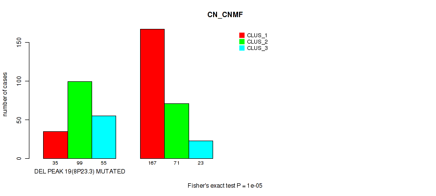 del_19p13.3 cnv correlated to 'CN_CNMF', 'MRNASEQ_CNMF', 'MRNASEQ_CHIERARCHICAL', and 'MIRSEQ_CHIERARCHICAL'.