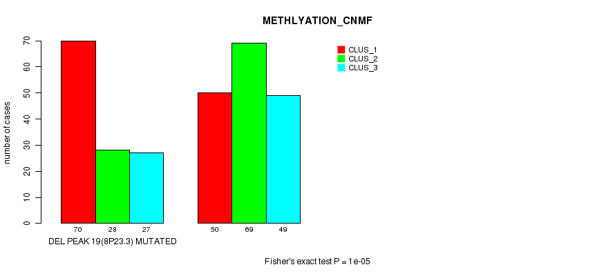 del_8p23.3 cnv correlated to 'MRNA_CNMF', 'MRNA_CHIERARCHICAL', 'CN_CNMF', 'METHLYATION_CNMF', 'MRNASEQ_CNMF', 'MRNASEQ_CHIERARCHICAL', and 'MIRSEQ_MATURE_CHIERARCHICAL'.