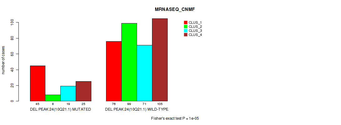 del_10q23.31 cnv correlated to 'CN_CNMF', 'METHLYATION_CNMF', 'MRNASEQ_CNMF', and 'MRNASEQ_CHIERARCHICAL'.