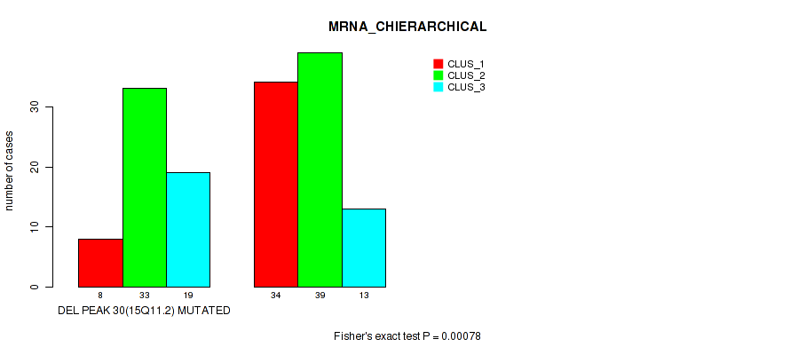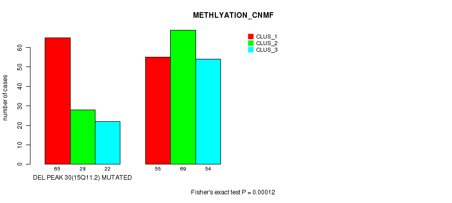 del_15q11.2 cnv correlated to 'MRNA_CNMF', 'MRNA_CHIERARCHICAL', 'CN_CNMF', 'METHLYATION_CNMF', 'MRNASEQ_CNMF', and 'MRNASEQ_CHIERARCHICAL'.