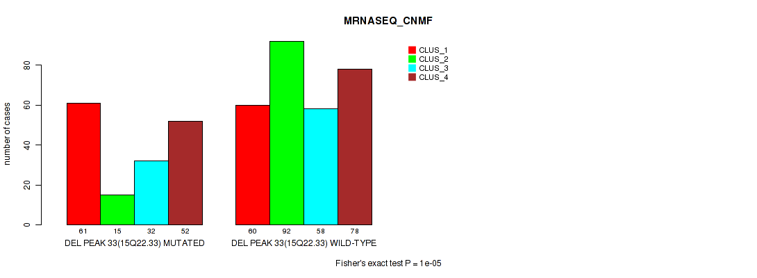 del_15q22.33 cnv correlated to 'MRNA_CNMF', 'MRNA_CHIERARCHICAL', 'CN_CNMF', 'METHLYATION_CNMF', 'MRNASEQ_CNMF', and 'MRNASEQ_CHIERARCHICAL'.
