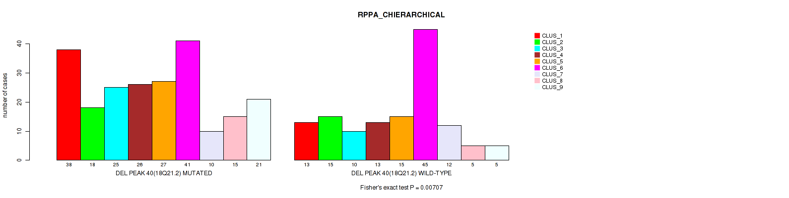 del_18q21.2 cnv correlated to 'MRNA_CNMF', 'MRNA_CHIERARCHICAL', 'CN_CNMF', 'METHLYATION_CNMF', 'RPPA_CHIERARCHICAL', 'MRNASEQ_CNMF', 'MRNASEQ_CHIERARCHICAL', 'MIRSEQ_CHIERARCHICAL', and 'MIRSEQ_MATURE_CHIERARCHICAL'.